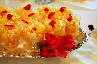 Arrange clusters of blooms from the yard on platters of fruit or desserts